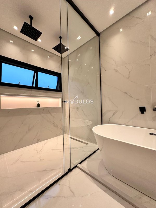 05 Suítes generosas sendo uma master ampla com varanda privativa, clouset, sala de banho com banheira de imersão, cuba dupla e ducha Sr. & Sra.