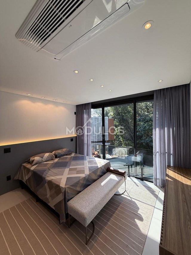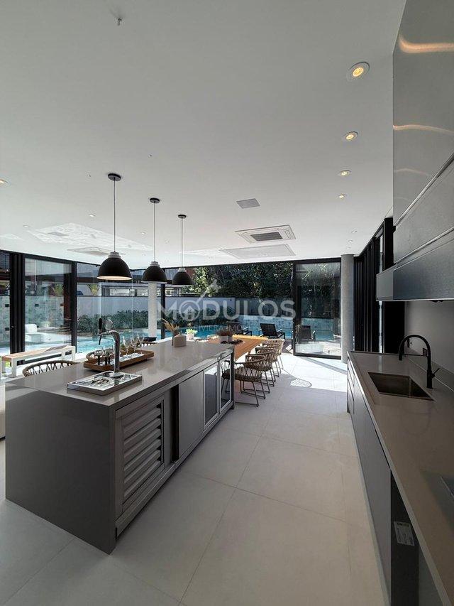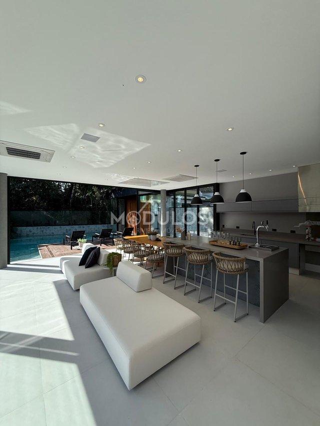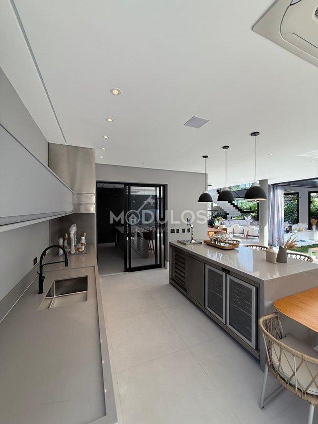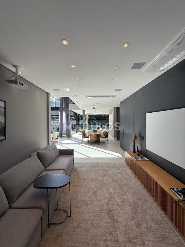 Destaque para fachada imponente I Living com pé direito duplo espaçoso e iluminado para múltiplos ambientes I Sala home reversível com projetor I Cozinha com balcão em pedra nobre equipada com eletros de ponta integrada ao gourmet I Lavabo I Suite de funcionário (a) I 06 Vagas de garagem com carregador elétrico para autos.