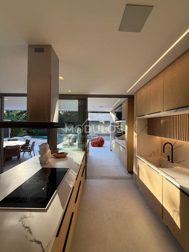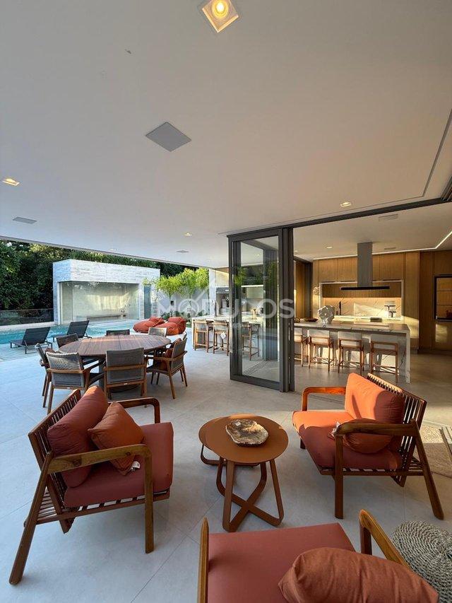 Gigantesco living para três ambientes com pé direto duplo I Sala home reversível para 7ª suíte I Star & jantar I Cozinha com balcão em pedra nobre (dekton) equipada com eletros de ponta integrada ao gourmet I Adega Lavabo I 04 Vagas de garagem sendo com carregador elétrico para autos e 01 dependência de funcionário (a).
