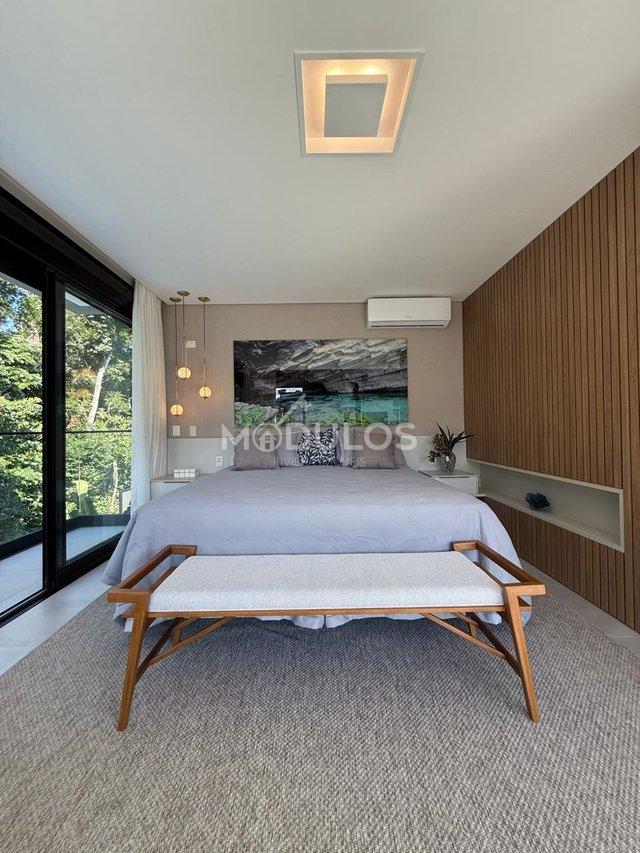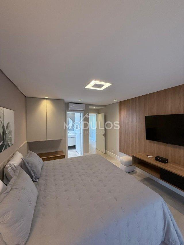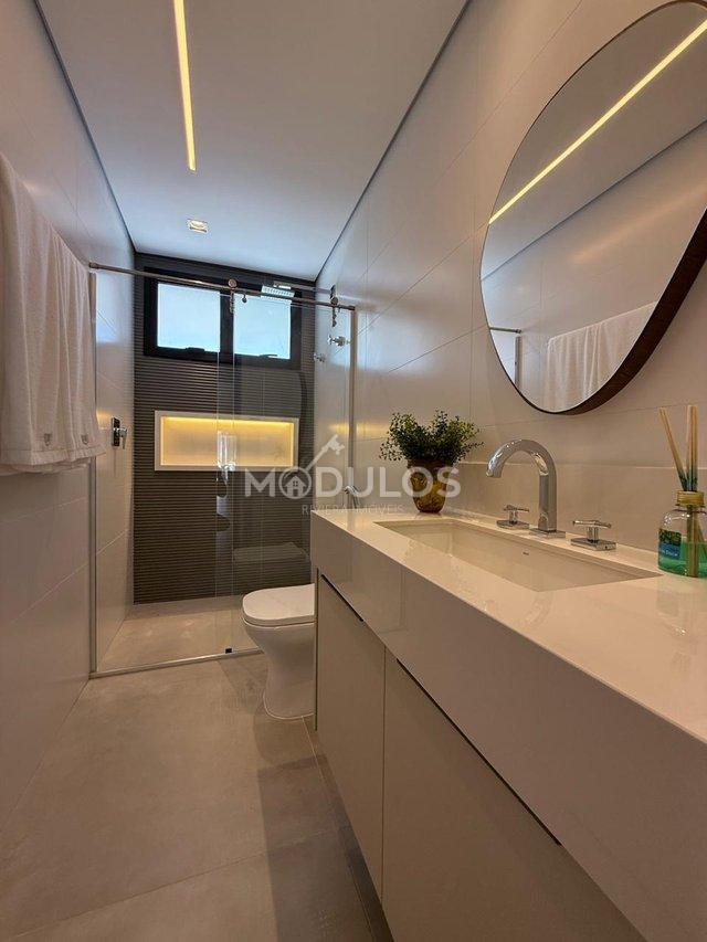 06 Suítes amplas equipadas e decoradas sendo uma master com clouset, sala de banho equipada com Cuba dupla, ducha Sr. & Sra. Banheira de imersão, varanda privativa, vista panorâmica e copa de apoio.