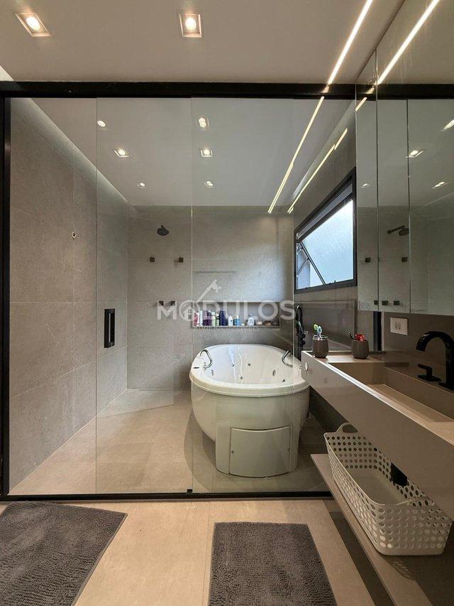Área social com composta por três suítes amplas, aconchegantes e distintas sendo uma master equipada com sala de banho, banheira de hidromassagem e varanda privativa com vista panorâmica.